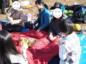 お昼には、外でみんなそろって昼食を取りました。外で食べるご飯はやはり格別で、