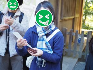 その後はお参りを行い、お賽銭をして、みんなそれぞれに願いごとをしながら手を合わせていました。