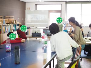 少し難しいお題ということもあり、最初はみんな考え込む様子も見られましたが、「あの動きミャクミャクだよね」や「なんだか焦っている感じに見える」など、少しずつ正解に近づいていき、最終的には正解にニアピンのところまで答えが出ました。